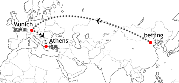 北京到慕尼黑飞了8个多小时,因为追着地球飞,外面的天就没黑过,第一次跨越这么多时区自然有些不适应。老婆说,从国内到国外时差比较好倒,因为你兴奋啊。